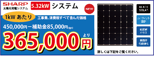太陽光発電用ソーラーパネル/最大出力5.32kW