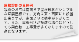 どんな形の屋根で、障害物や影になるようなものはないか確認します。