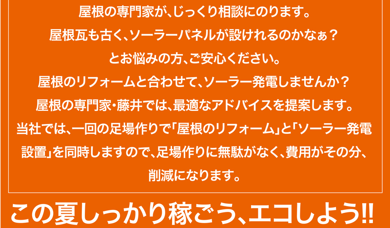 - ソーラーパネル、太陽光発電システムのことなら屋根の専門家にまかせて安心