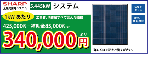1kWあたり425,000円−国の補助金35,000円−地方自治体の補助金50,000円